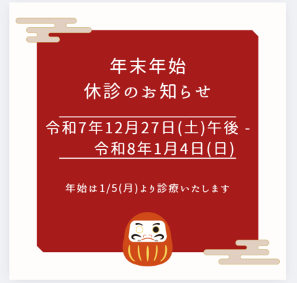 年末年始休診日のお知らせ